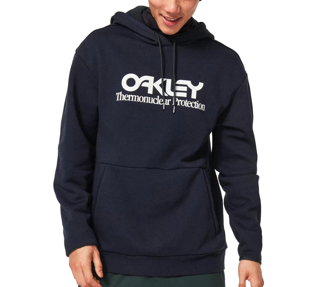 Il cappuccio con coulisse regolabile agisce in sinergia con il bordo e i polsini elasticizzati per resistere alle temperature più basse, mentre le tasche con zip sul fronte tengono al sicuro tutto l'indispensabile. E lo stile è assicurato grazie all'iconico logo Oakley Thermonuclear Protection sul petto.